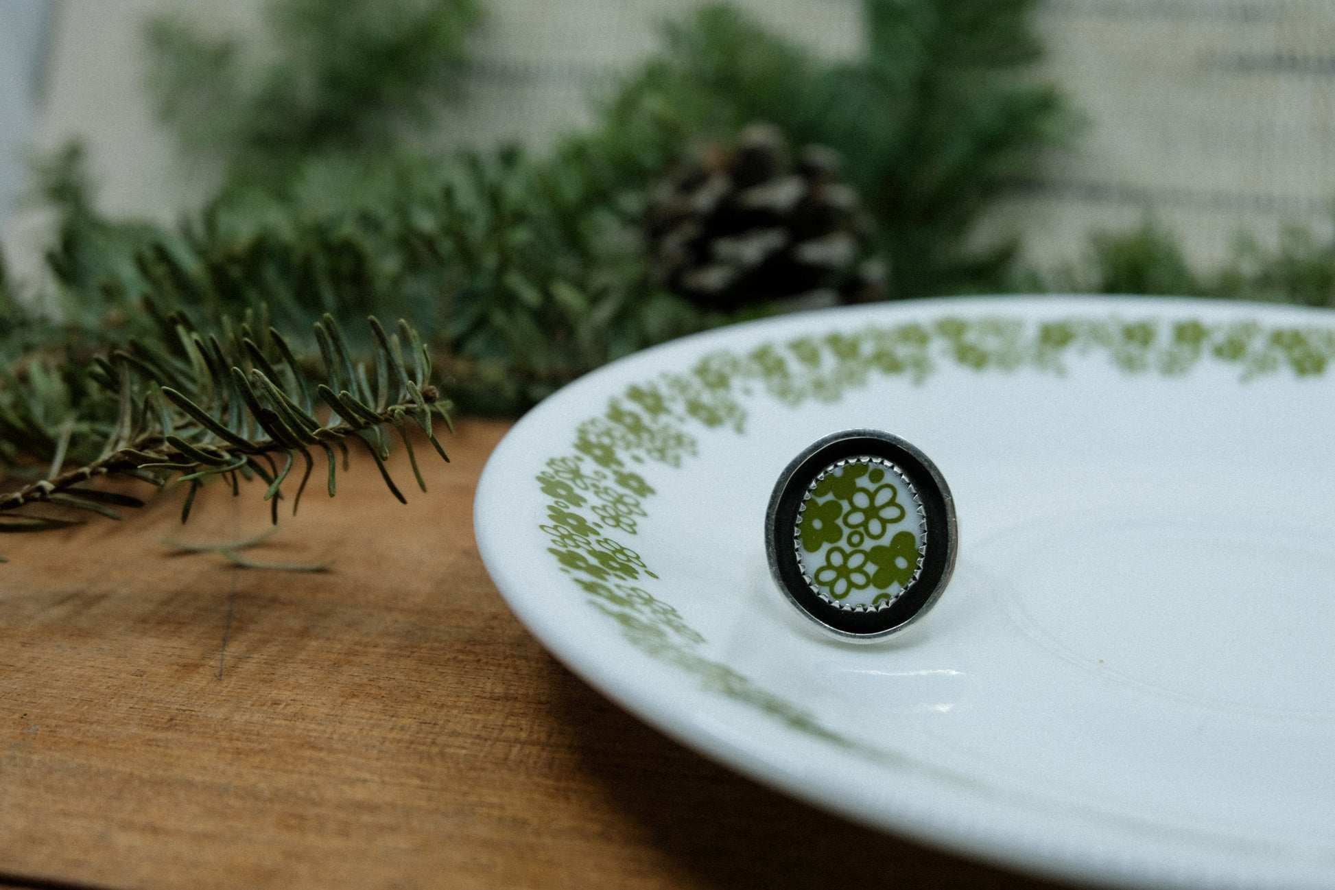 Sterling Silver and Vintage 1970s Corelle Vitrelle Plate