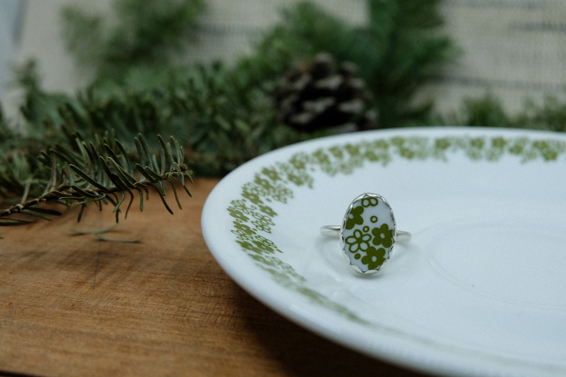 Sterling Silver and Vintage 1970s Corelle Vitrelle Plate